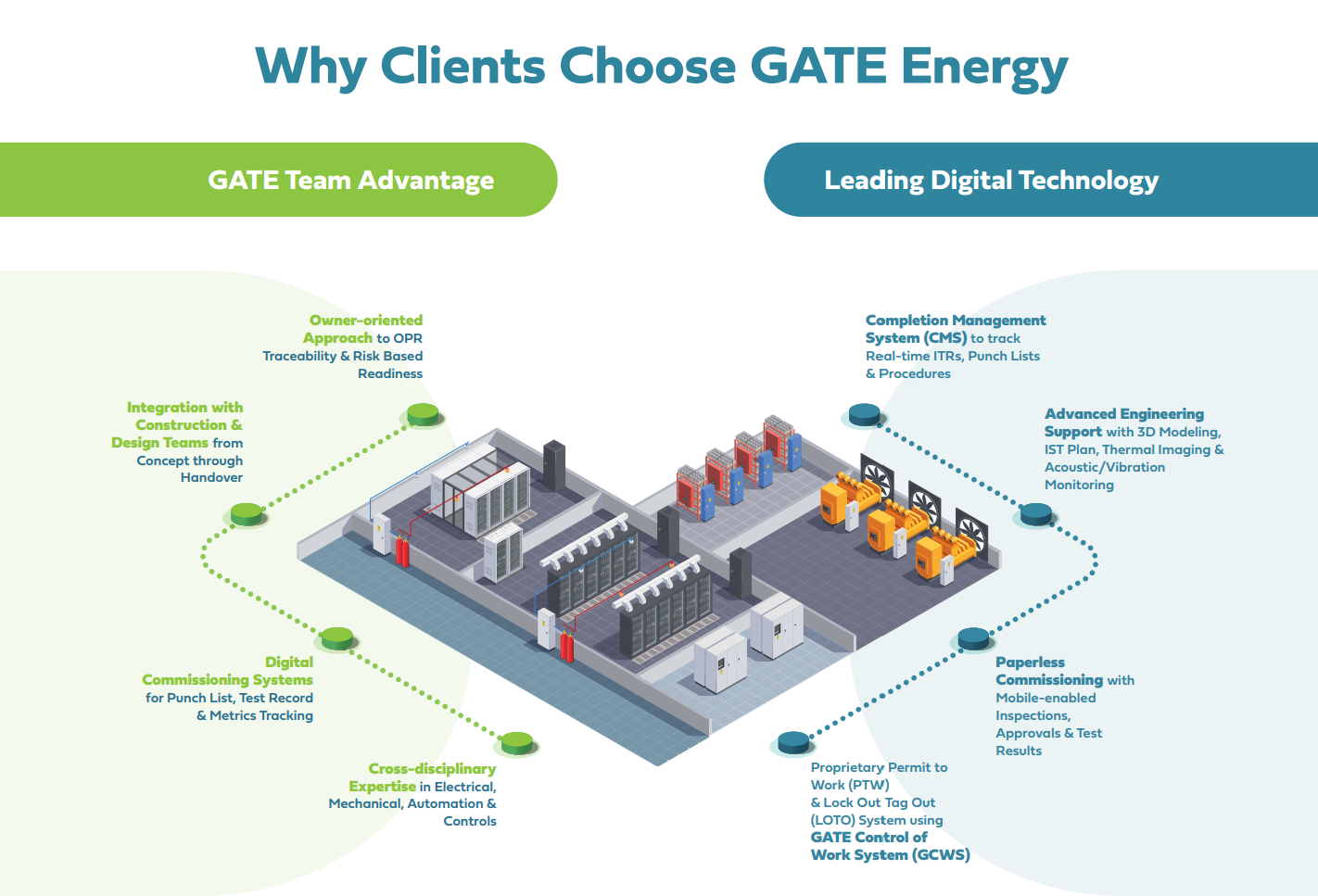 GATE Energy provides comprehensive pre-commissioning and commissioning services tailored to data center developments. Our approach ensures predictable, verifiable, and safe transitions from construction to operations.